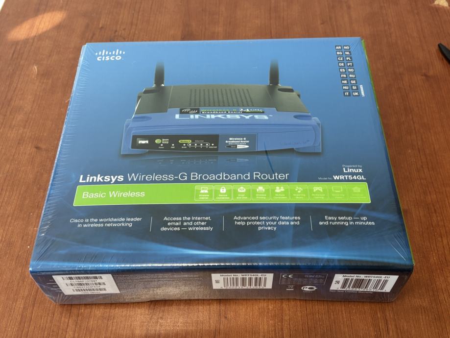 Prodam nikoli odprt (še v original plastični embalaži router oz. usmerjevalnik Linksys WRT54GL.