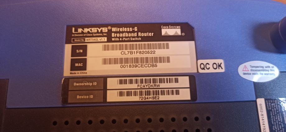Usmerjevalnik - router proizvajalca Linksys, model WRT54GL v1.1.
