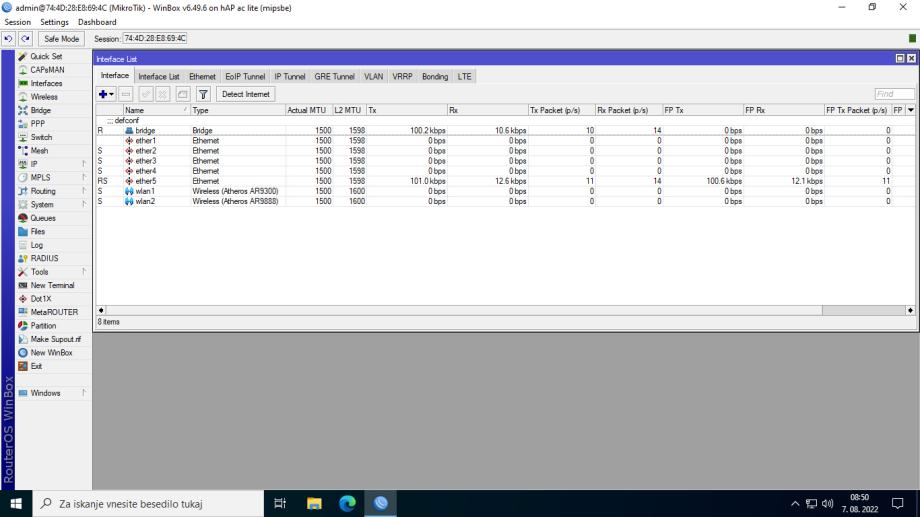 - 5 x ETH 10/100 (port 1 podpira PoE in, port 5 pa PoE out)