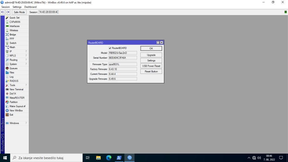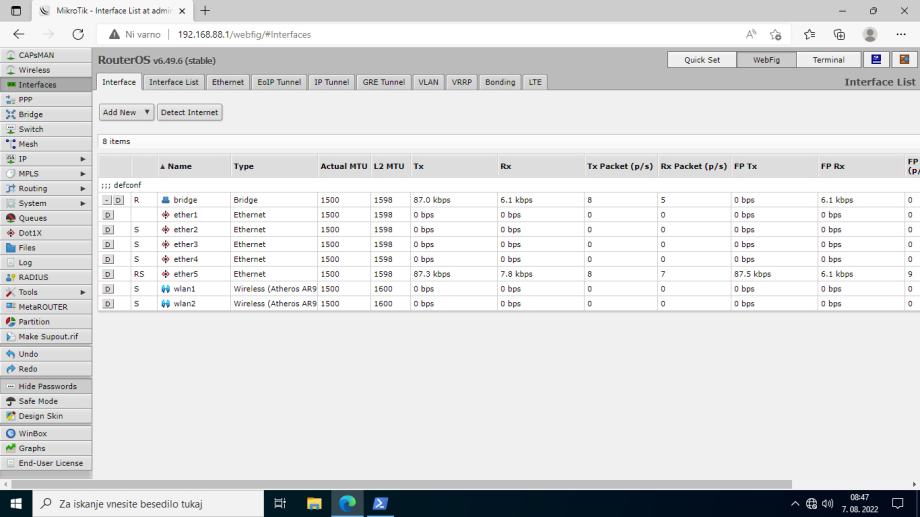 Konfiguracija je možna preko spletnega vmesnika ali preko programa Winbox.