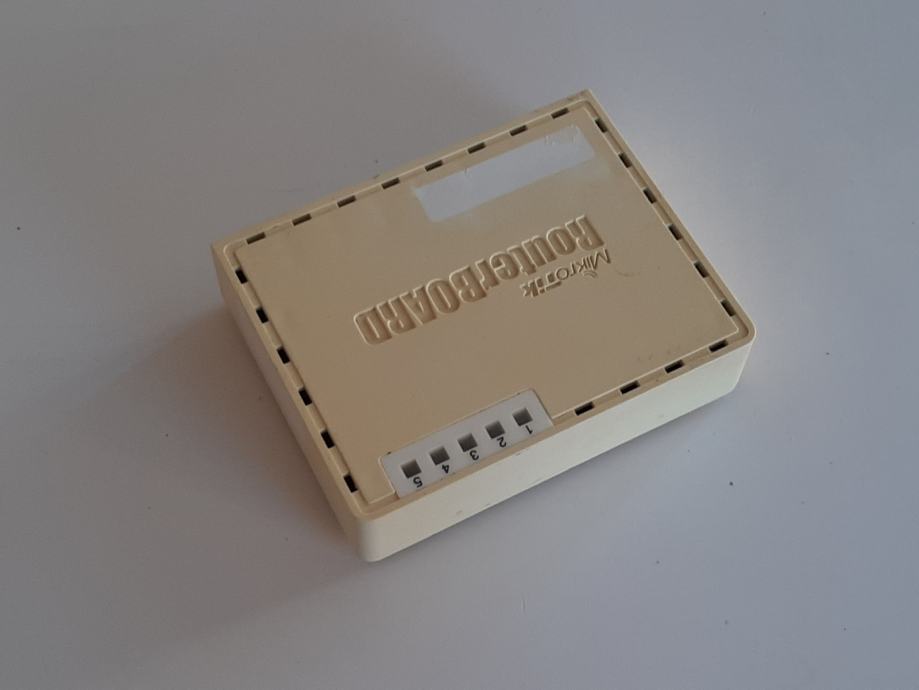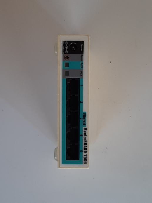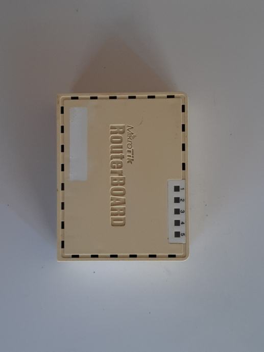 Delujoč MikroTik RouterBOARD RB750 (5 portov). Super za domače omrežje ali manjšo pisarno. Majhen, zanesljiv in nastavljiv.