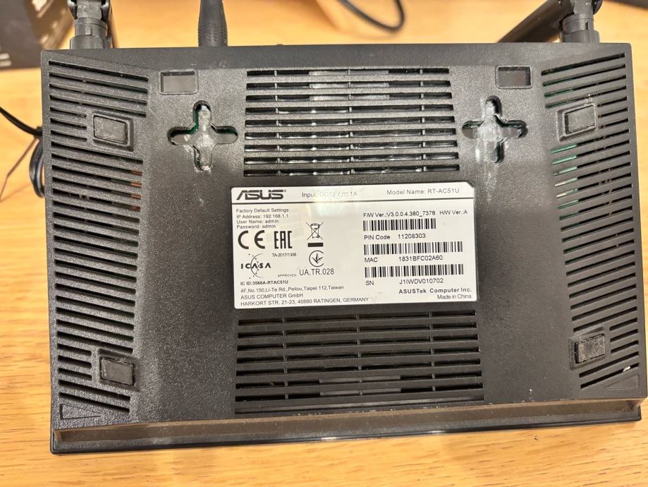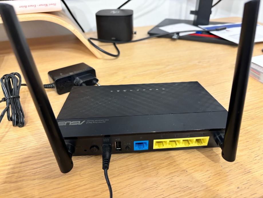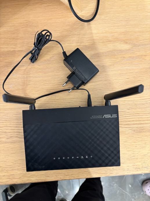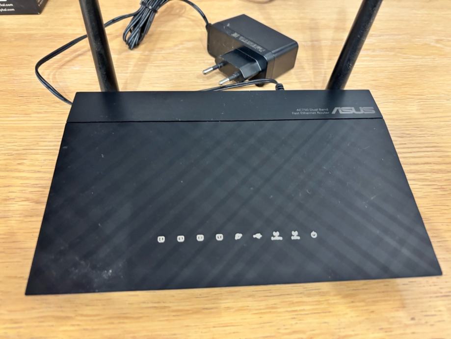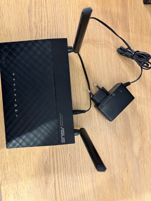 Prodam rabljen Asus usmerjevalnik (router) z ojačevalcem signala, ki je v dobrem stanju. Naprava ima dve anteni za boljšo pokritost s signalom in več ethernet vhodov za žične povezave. Vključen je tudi električni adapter za napajanje.