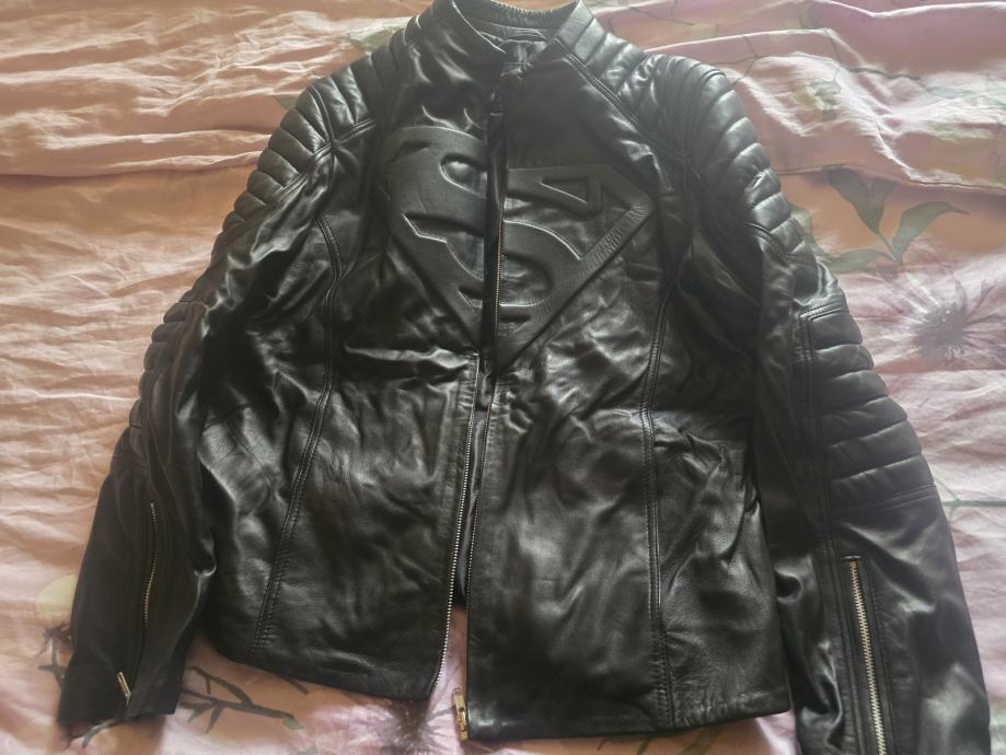 MOŠKA USNJENA JAKNA SUPERMEN, VELIKOST 52-54, NOŠENA SAMO 1X, V ČRNI BARVI, NA KOMOLCIH TER RAMENAH OJAČANA,ZADAJ ZRAČNA,PRIMERNA TUDI ZA MOTORISTE,PRAVO USNJE, KOT NOVA, UGODNA CENA, TEL.031 275 440