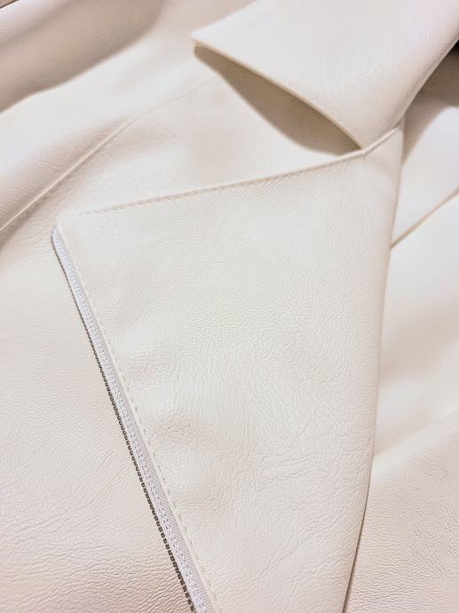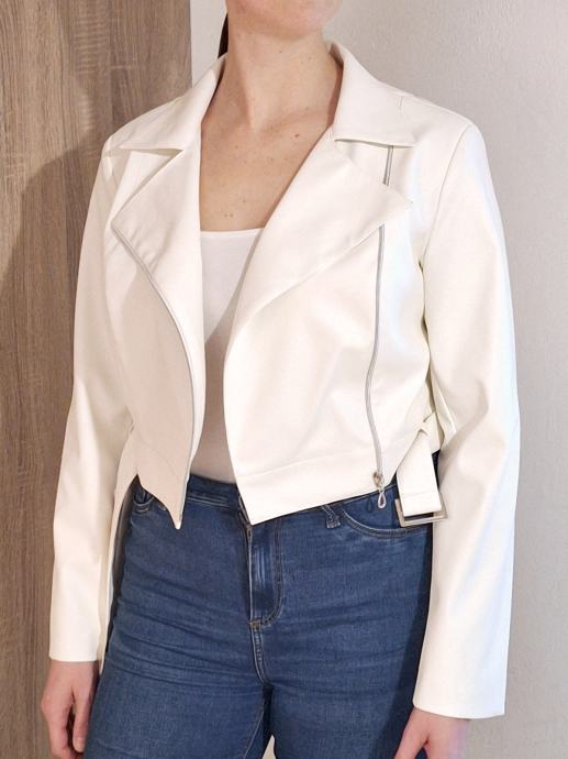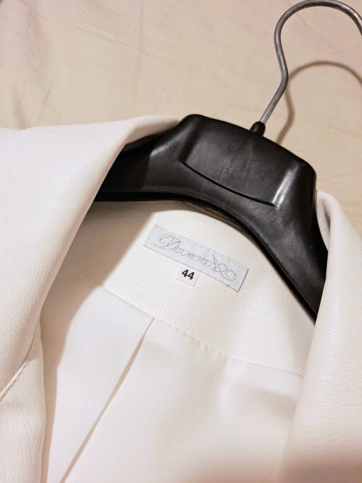Kupila sem jo za 120 €, prodajam za 60 €. Velikost je 44. Jakna je iz belega umetnega usnja.