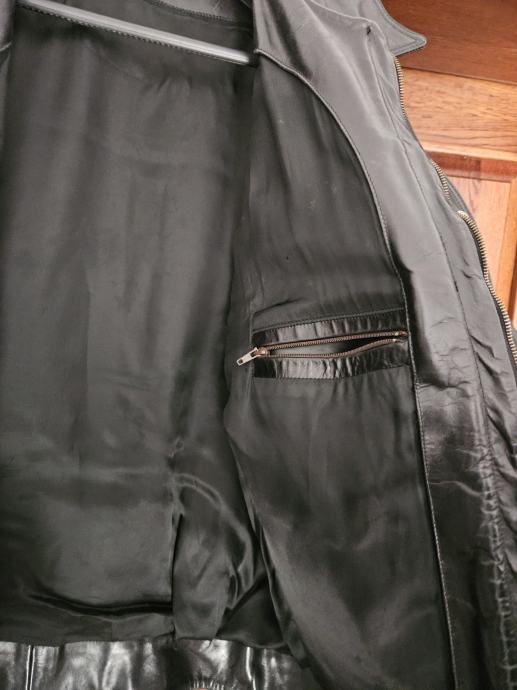 Prodajam ročno izdelano moško usnjeno jakno, narejeno po meri iz kakovostnega, debelega pravega usnja. Jakna ima klasičen kroj z zadrgo in gumbi, več funkcionalnih žepov ter robusten, eleganten videz. Izdelana je z veliko pozornostjo do detajlov. Primerna za moške višine 177–188 cm, velikost L do XL.