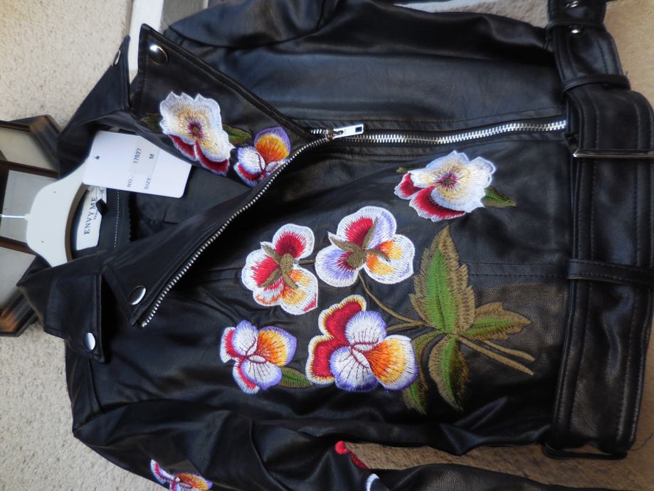 Nova, z etiketo, podložena, ni raztegljiva, iz umetnega usnja, s čudovito cvetlično vezenino.