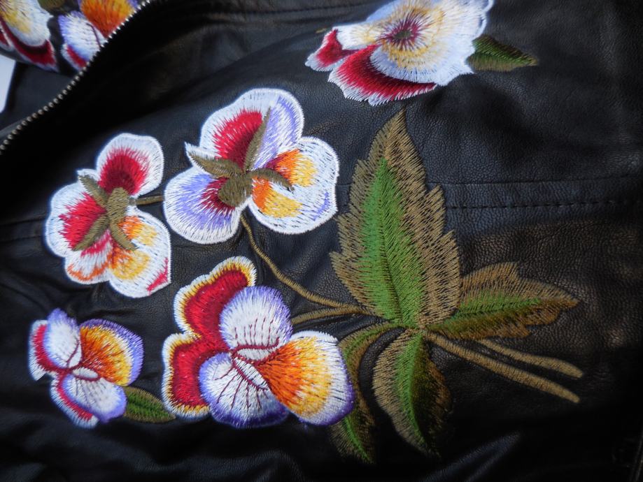 Nova, z etiketo, podložena, ni raztegljiva, iz umetnega usnja, s čudovito cvetlično vezenino.