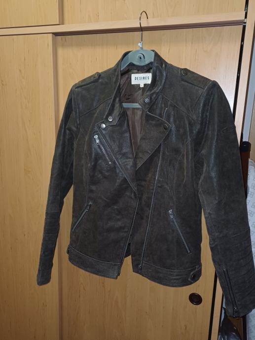 Ugodno prodam nenošeno temno rjavo usnjeno žensko jakno v motorističnem stilu.