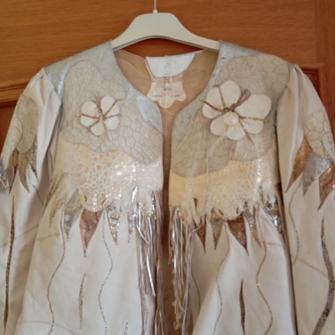 lepo ohranjena, mehka in prijetna za nošenje, ni podložena, brez zapenjanja, od ene pazduhe do druge meri cca 47cm, dolžina je 57cm, ne menjam, ptt ni vključena v ceno