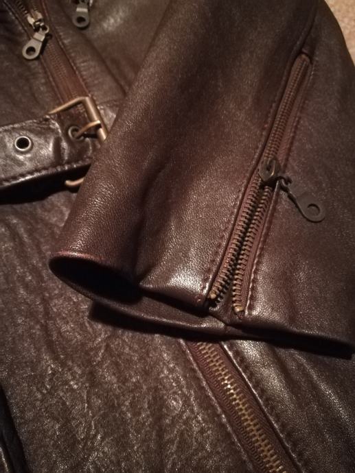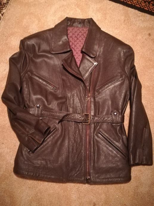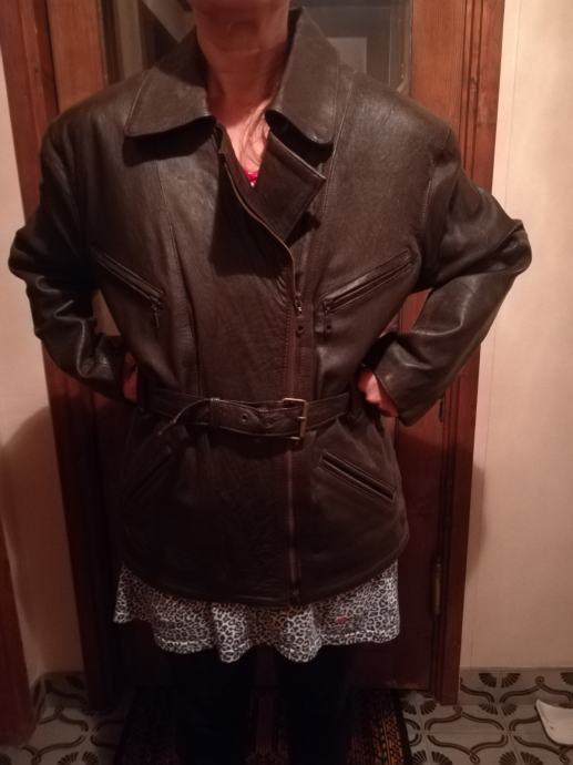 NOVA, nikoli nošena, daljša, usnjena (pravo usnje) in podložena ženska jakna, s pasom, vel 42 (L), pravo gladko usnje.