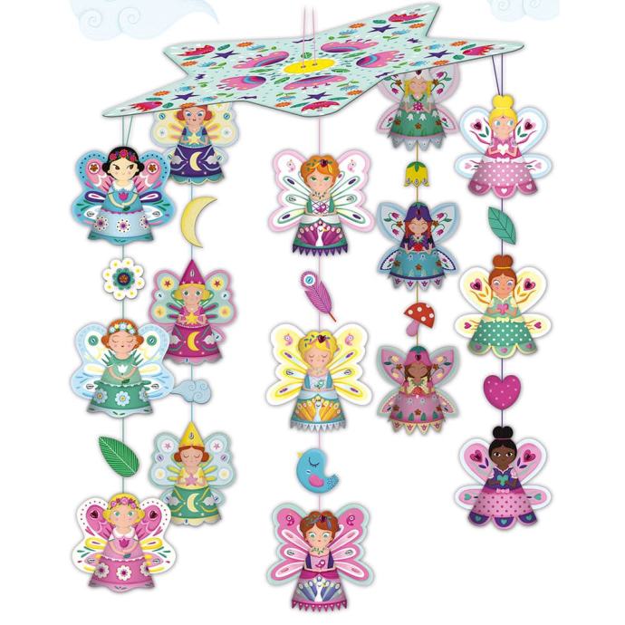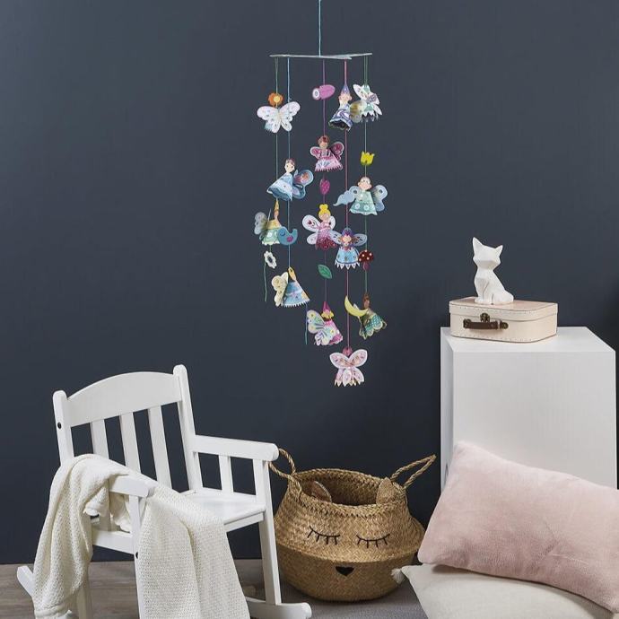 Vile se pripravljajo na pravi balet v zraku! Ta lep pravljičen mobile lahko otroci naredijo kar sami s kompletom prekrasnih dodatkov. Najprej sestavite 15 papirnatih vil in jih obesite na zvezdo. Nato vile okrasite z bleščečimi kamenčki, da se bodo zablestele! Mobilne je dimenzije: 100 cm v višino.