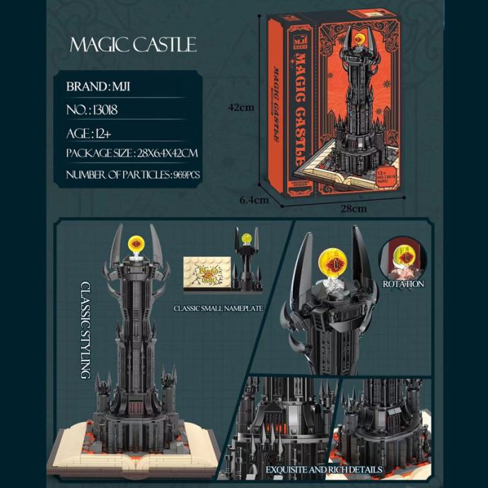 Nov še neodprt set Lord of the Rings: Barad Dur stolp Lego kompatibilne kocke. Set je nov in še neodprt. Vsebuje 969 kock, številka seta 13018.