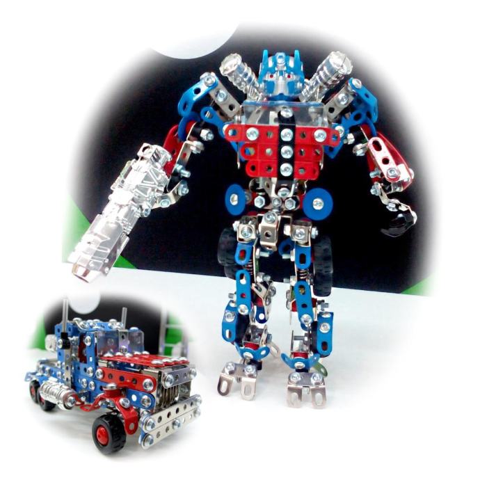 Robot transformer rdeče-moder. Sestavite lahko robota ali pa tovornjak. Zaradi dodatkov je je videz tako robota