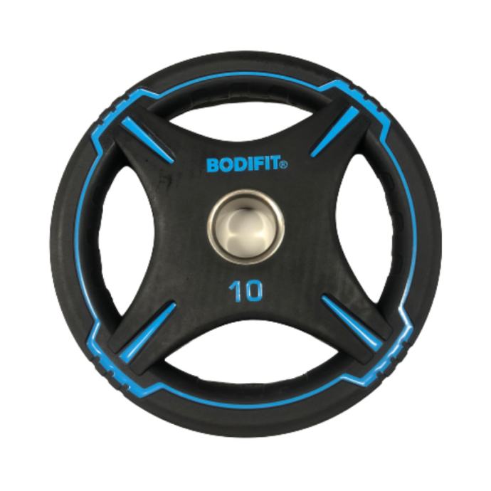 BODIFIT uteži (koluti) so iz visoko kakovostnega materiala (TPU) z jekleno luknjo. Poliuretanska prevleka (TPU) naredi ploščo za utež izjemno vzdržljivo in podaljšuje njeno življenjsko dobo. Ergonomski ročaji omogočajo enostavno rokovanje z utežjo. Kvaliteten in odporen material, ki je tudi prijeten na oprijem, odlikuje moderen in praktičen dizajn.