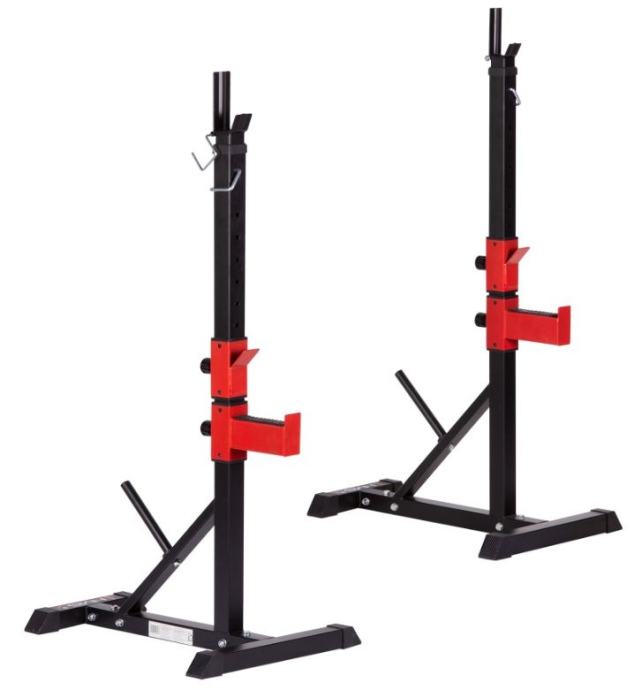 Stojalo – nosilec utežne fitnes palice za squat vadbo, vadbo bench press-a s klopjo ali vadbo biceps mišic ter ramen stoje. Ima kar 10-stopenjsko nastavitev nivojev tako da jo lahko prilagodite svoji višini in vrsti vadbe. Nastavitev je enostavna in hitra - samo odvijte ročko, nastavite ustrezno višino in zatisnete ročko. Ima največjo obremenitev do 250 kg za zahtevne uporabnike.