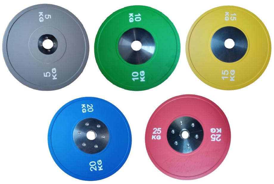 - bumper diski gumirane uteži 5 kg, 10 kg, 15 kg, 20 kg, 25 kg, barvne in črne