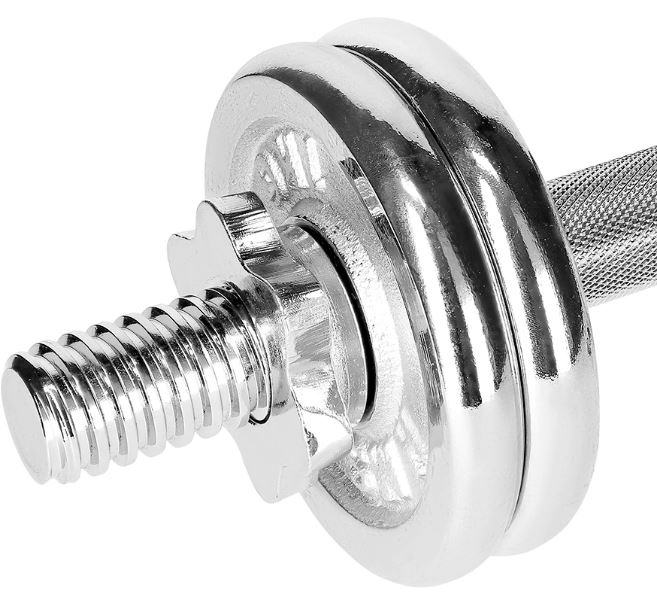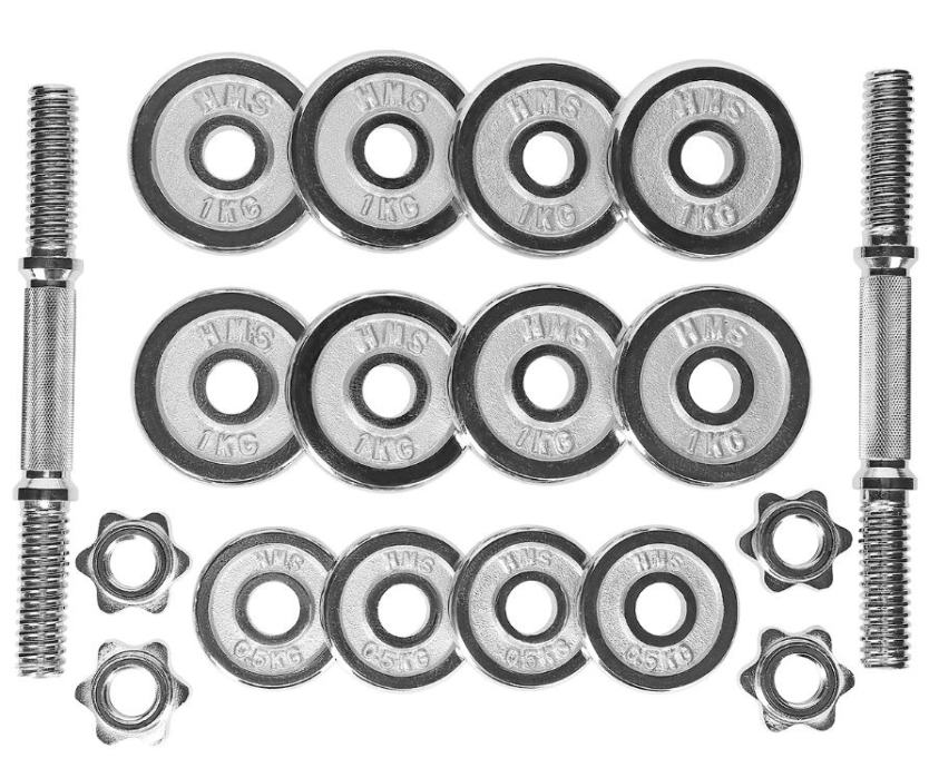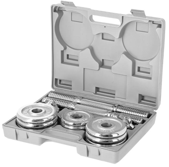Uteži 15 kg prejmete v kovčku. Diske lahko po želji odstranimo ali dodamo in tako prilagodimo vadbo našim zmožnostim. Uteži so kromirane.