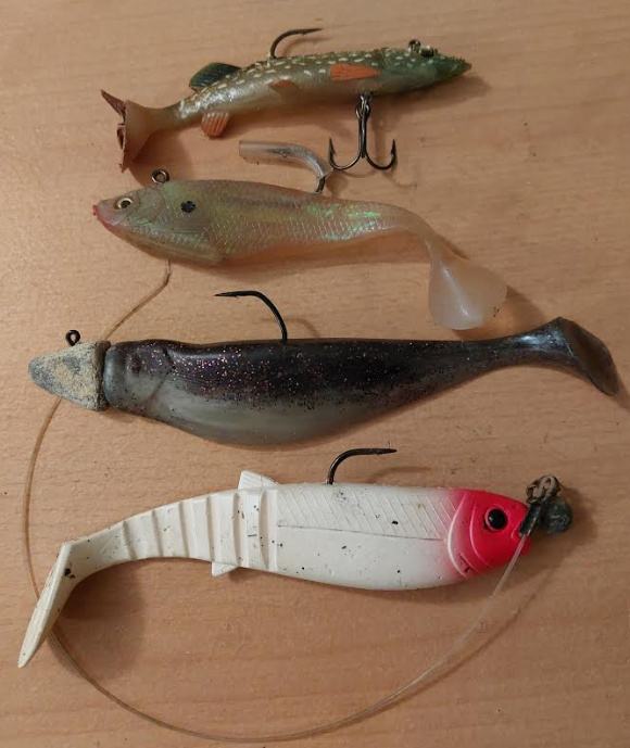 - večje silikonske vabe za lov sulca (6x=30 eur),