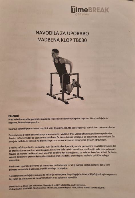 Kupljeno preko spletne trgovine TimeBREAK. Primerljiv nov model: https://www.timebreak.eu/trgovina/fitnes-oprema/gimnastika/bradlja-paralele/fitnes-oprema-bradlja-paralele