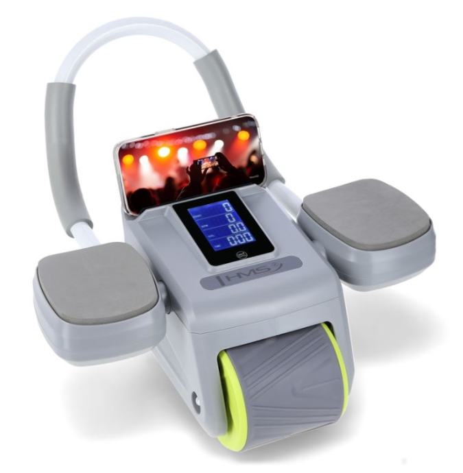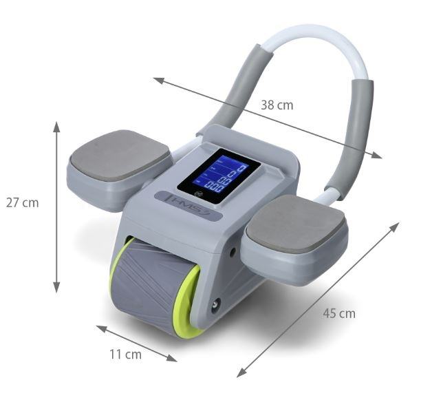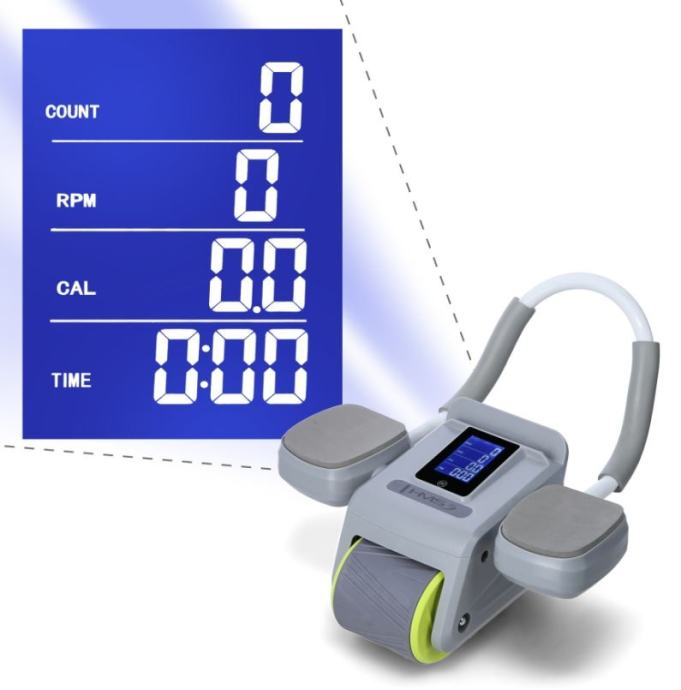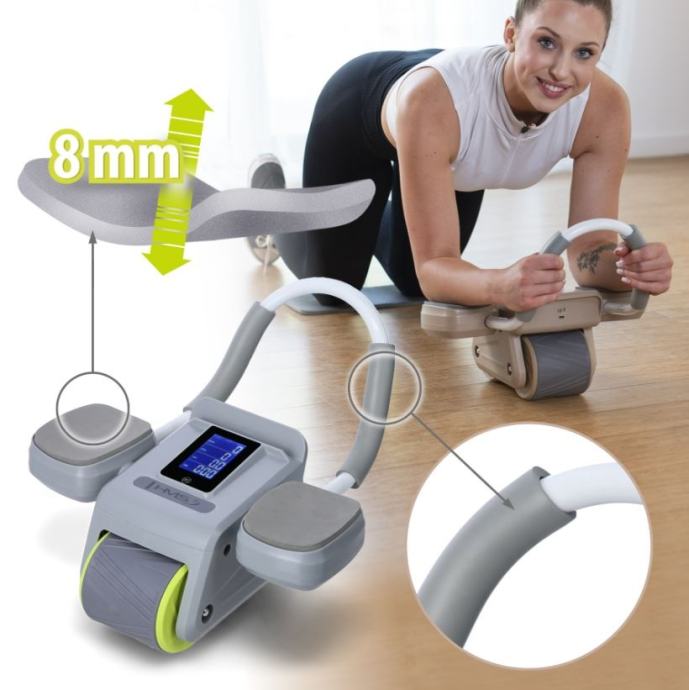 Novo kolesce z digitalnim zaslonom, ki vam pomaga pri vadbi trebušnih mišic. Samodejna pomoč pri vračanju nazaj v prvotni položaj, tako da se lahko osredotočite na pravilno vadbo. Z uporabo tega pripomočka ne boste okrepili samo trebušnih mišic, ampak boste vključili tudi druge mišične skupine. Zahvaljujoč gladkemu, samodejnemu gibanju kolesa imate popoln nadzor nad svojimi vajami. Odlična ergonomska držala, podloga za komolce ter podloga za kolena za udobno vadbo!