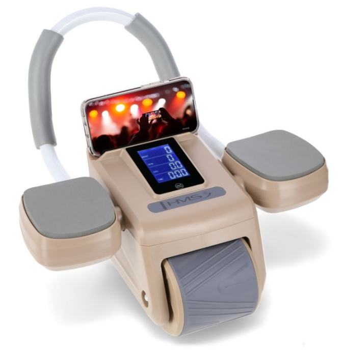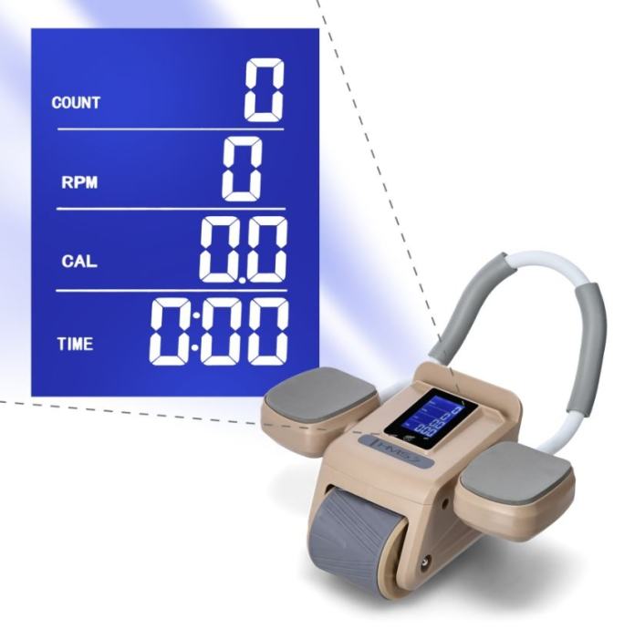 Kolo z digitalnim zaslonom, ki vam pomaga pri vadbi trebušnih mišic. Samodejna pomoč pri vračanju nazaj v prvotni položaj, tako da se lahko osredotočite na pravilno vadbo. Z uporabo tega pripomočka ne boste okrepili samo trebušnih mišic, ampak boste vključili tudi druge mišične skupine. Zahvaljujoč gladkemu, samodejnemu gibanju kolesa imate popoln nadzor nad svojimi vajami. Odlična ergonomska držala, podloga za komolce ter podloga za kolena za udobno vadbo!