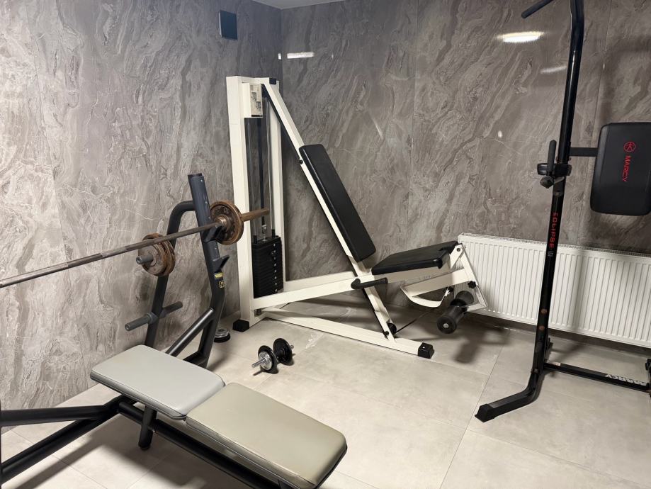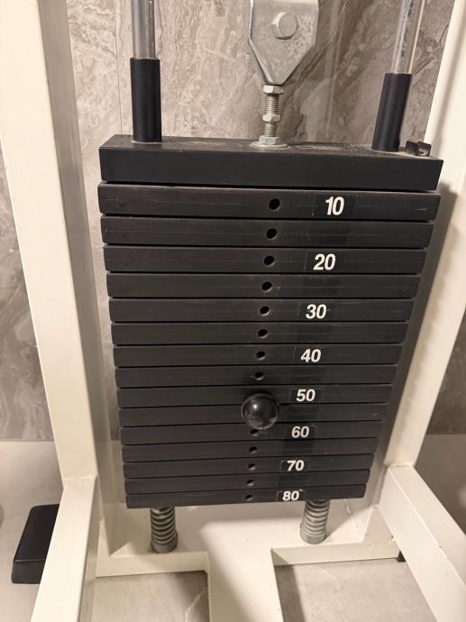 Prodajam profesionalno fitnes napravo Leg Extension za krepitev stegenskih mišic. Naprava je v dobrem stanju, bele barve z udobno črno blazino. Opremljena je z utežmi različnih težnosti (od 10 do 80 kg), ki omogočajo postopno povečevanje obremenitve. Konstrukcija je stabilna in robustna, primerna tako za domačo kot komercialno uporabo. Naprava ima ergonomsko oblikovano sedalo in podlogo za noge, kar omogoča udobno in učinkovito vadbo. Idealna za razvoj kvadricepsov in krepitev sprednjega dela stegna.