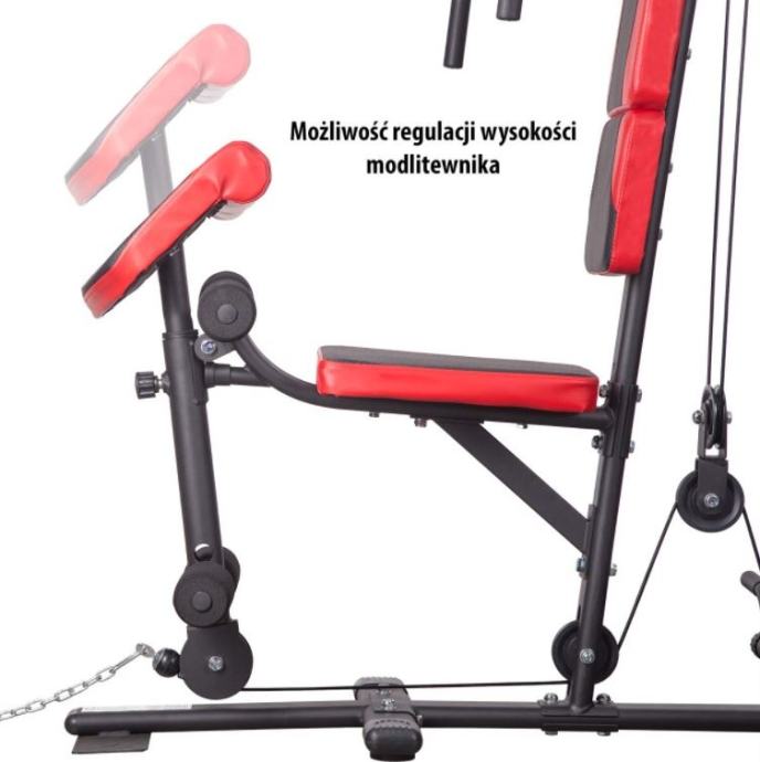 Multifunkcijska vadbena postaja za dom omogoča vadbo več različnih vaj. K napravi je dodan še drog za dvigovanje nog in dip vadbo ter ukrivljena klop z možnostjo nastavitve več višin.VAJE:butterflyleg press stationhigh pulleyarm curl padpull upškripecin večDimenzije izdelka:dolžina: 223 cmširina: 160 cmvišina: 210 cmRočke: 1,5 kg (2 kosa)Teža izdelka: 142,5 kgNajvečja teža uporabnika: 110 kgPošiljanje: 4 paketiPriložene uteži: 68 kgVeč podatkov o izdelku si oglejte na tej povezavi