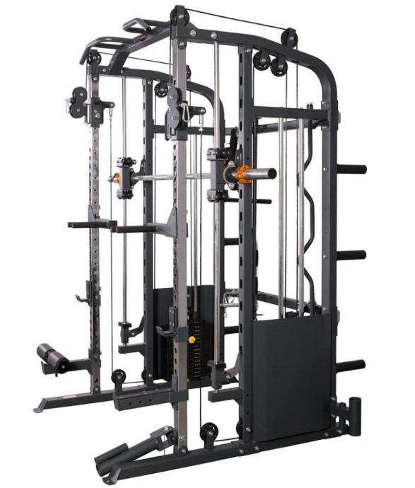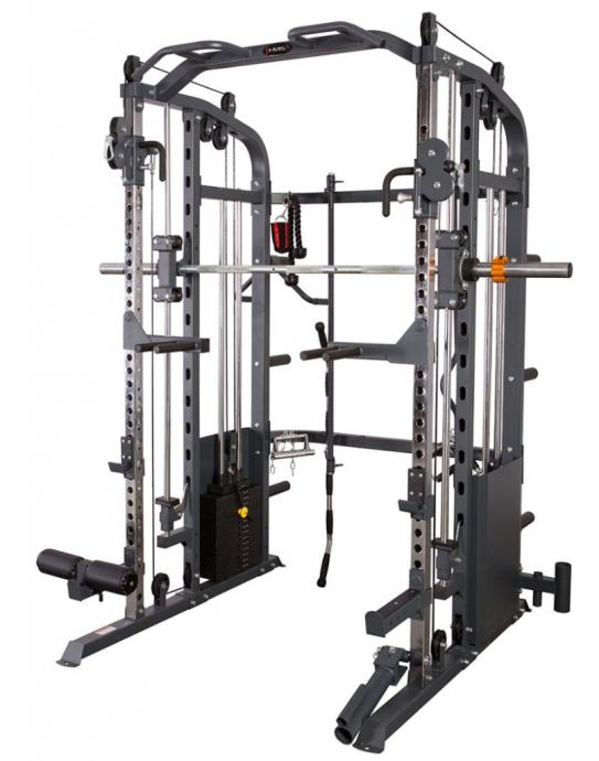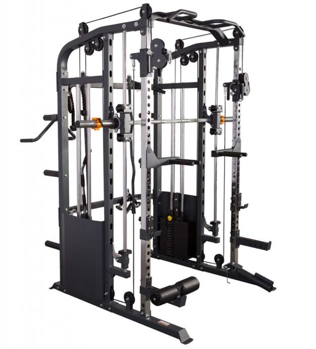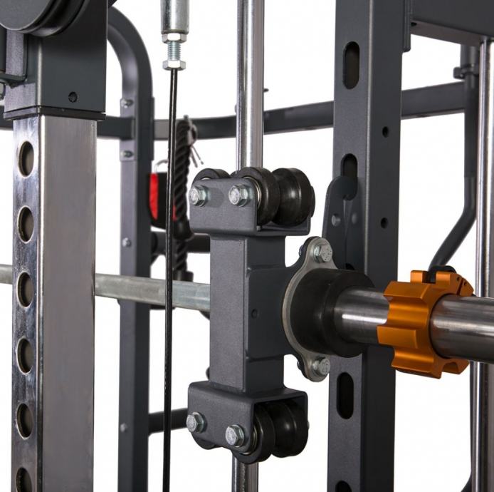 Omogoča vadbo skoraj vseh mišičnih skupin. Utež, palica in 2 škripca z nastavljivo višino vam bodo omogočili, da aktivirate celo telo. Število dodatkov, ki so priloženi napravi, zagotavlja vključitev treniranih mišic iz različnih kotov, s čimer jih razvijete v polni meri. Poleg tega dodatki znatno povečajo in popestrijo seznam vaj, ki jih je mogoče izvajati. Vsak gib, izveden na žerjavu, bo varen zaradi vseh varnostnih naprav in zadrževalnih mehanizmov, nameščenih v napravi. Žerjav ima tudi obešala in posebno držalo za prosto utež, zato je možen tudi trening s prostimi utežmi.