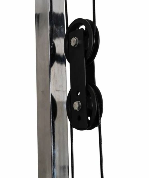 Fitnes kletka Athletic za vadbo celega telesa v udobju doma. Ima vgrajen škripec za vadbo z utežmi. Zraven prejmete tudi držala za dip vadbo.Zgornji in spodnji drog priložena