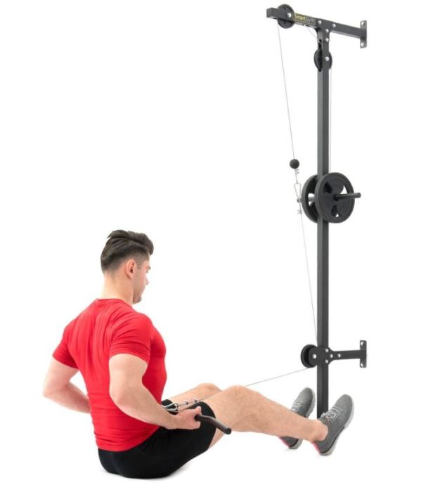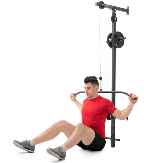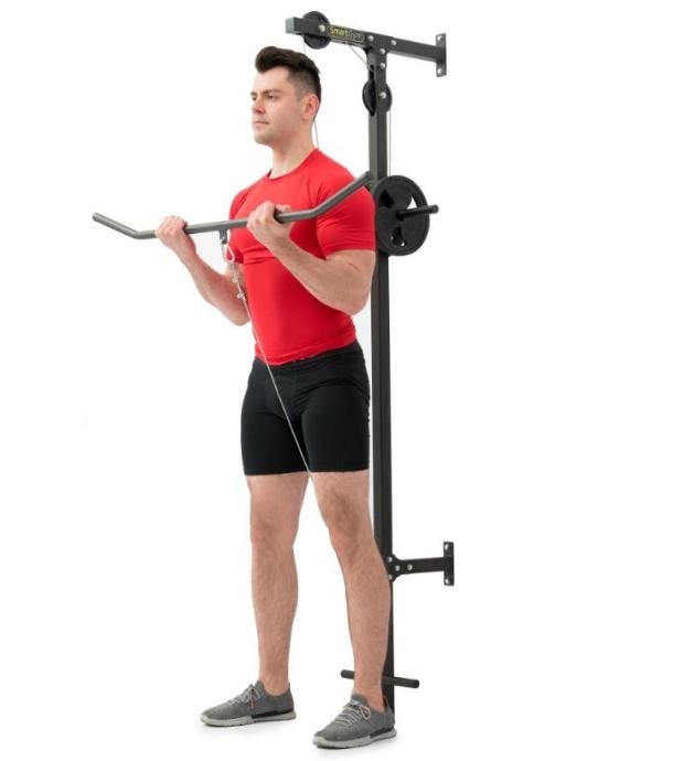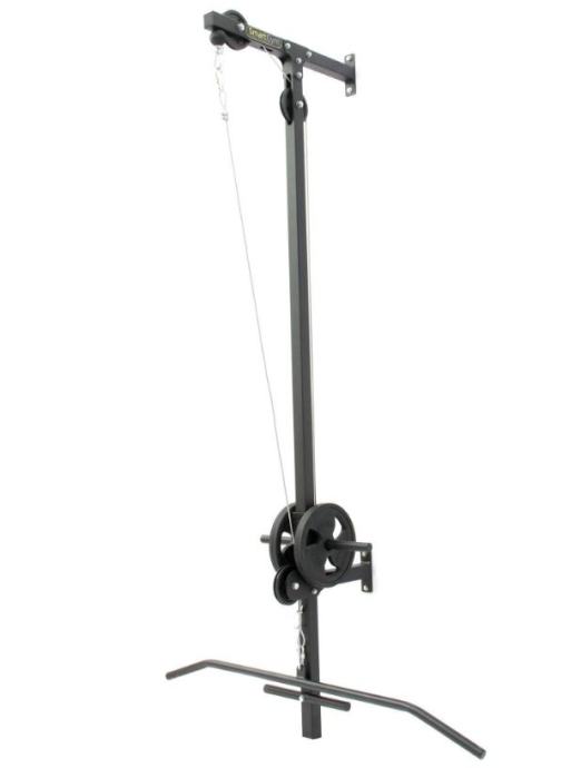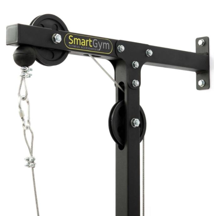 Škripec za domačo vadbo z dvigovanje uteži na škripcih. Za gladko vadbo poskrbijo tri kolesa ter nosilec iz močne kovinske strukture. Konec vrvi je opremljen z debelim gumijastim odbijačem v obliki krogle, ki ščiti del pred morebitnimi poškodbami. Vaje, ki jih lahko delamo s to napravo so hrbet vleka spredaj in zadaj, rame vleka naprej, nazaj, vstran, roke vleka gor in dol. Vadimo lahko z ročajem nad glavo ali ročaj namestimo na spodnji škripec. Telovadite v vaši najljubši telovadnici - vaši sobi! Za vadbo potrebujete utežne diske. ZA raznoliko vadbo lahko poskusite z različnimi držali.