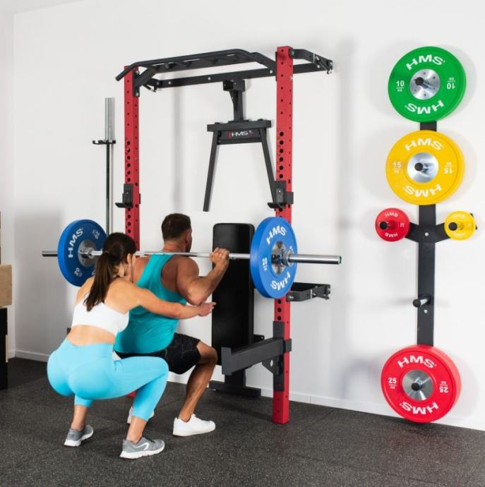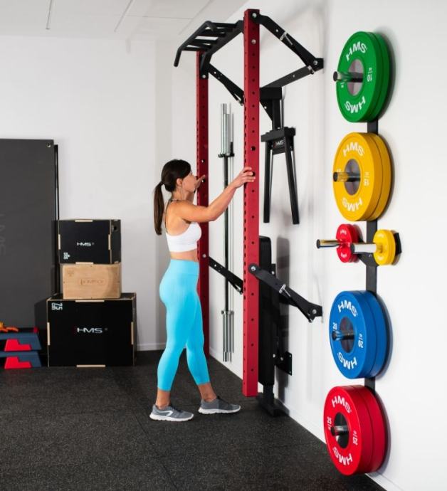 Zložljiva vadbena kletka half rack je zasnovana tako, da sledi trenutnim trendom in izpolni pričakovanja najzahtevnejših uporabnikov. Zaradi stabilnosti in varnosti jo pritrdimo na zid. Po uporabi jo lahko zložimo in prihranimo na prostoru. Ko je zložena zavzame le 31 cm od stene! Pol-kletka ima zgoraj pull up drog za dvigovanje telesa s katerim vadimo hrbtne, ramenske in prsne mišice zahvaljujoč različnim možnostim prijema. Priloženo dobite različne nosilce za vadbo z utežno palico – squat ali bench press. Nosilce lahko namestite na poljubni višini.
