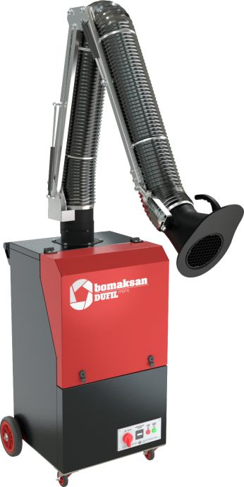 Filtrirna mobilna naprava Dufil z odsesovalno roko 2m. Mobilna filtrna naprava serije DUFILmini so mobilni filtri, zasnovani za lahke aplikacije prahu in hlapov. Zahvaljujoč posebej oblikovani napi in visoki sesalni moči lovi lahek prah in hlape, ki se sproščajo med različnimi aplikacijami, tako da ujame škodljiv in s prahom nasičen zrak in ga filtrira z visoko učinkovitimi kasetnimi filtri ter ga vrne v delovno okolje. Na ta način pomaga zagotavljati učinkovitejše in varnejše delovno okolje z zmanjševanjem tveganja poklicnih bolezni in nevarnosti poklicnih nesreč.