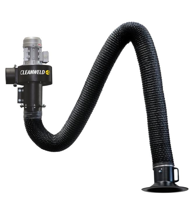 Stenski komplet za zajem in odvajanje varilnih dimov FAN+ARMOFLEX 4m, 400V. Odsesovalni stenski komplet za zajem in odvajanje dimov in plinov pri procesu varjenja z vključeno stensko roko v gibjivi izvedbi z notranjimi členki ARMOFLEX premera 160mm in dolžine 4000 mm z vključenim nosilcem in ventilatorjem mod.EV 15, Ø 160 mm, jakosti 1,1kW, napetosti 400V, izv. Ø 180 mm. Takšen cenovno ugoden komplet omogoča kakovosten zajem in odvajanje zdravju škodljivih dimov in plinov direktno vem iz delovnega območja brez filtracije.