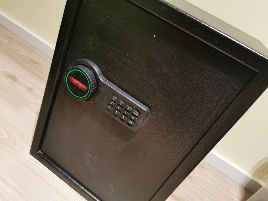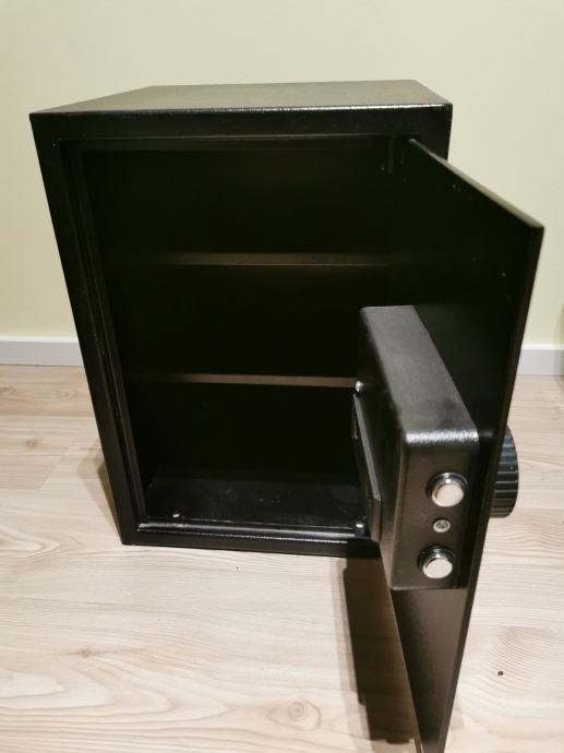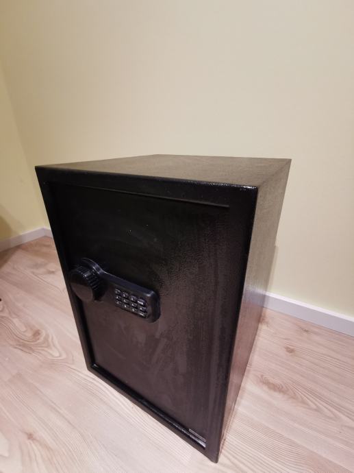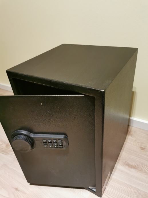 Kovinski sef - šifra / ključ. Dimenzija: V 52, Š 37, G 37.