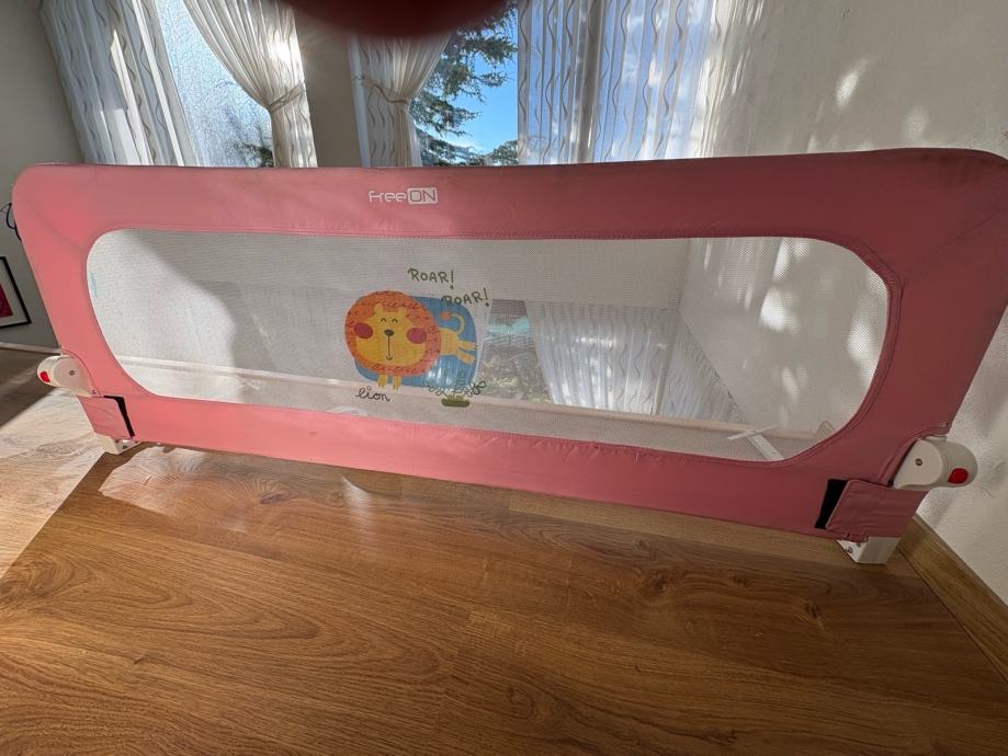 Namesti se pod posteljni vložek. Ograje ni potrebno vsakič odstranjevati, ampak jo z dvema ročkama obrnete navzdol za 180 stopinj. Karakteristike: • Namenjena je malčkom od 18 mesecev od 5 leta starosti. • Enostavna uporaba Dimenzije: 135 x 55 cm
