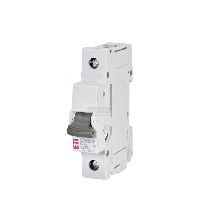 Inštalacijski odklopnik, ETIMAT P6 1p C6, Nazivna kratkostična zmogljivost (kA) 6, Izklopna karakteristika C, Funkcija MCB (Kompaktni odklopniki), Sponke (mm2) 1…25, Nazivna frekvenca (Hz) 50/60, Standardi 60898-1, 60947-2, Nazivna impulzna vzdržna napetost Uimp (kV) 6, Nazivna napetost (V) 240/415, Število polov 1, Vrsta napetosti AC, Nazivni tok (A) 6