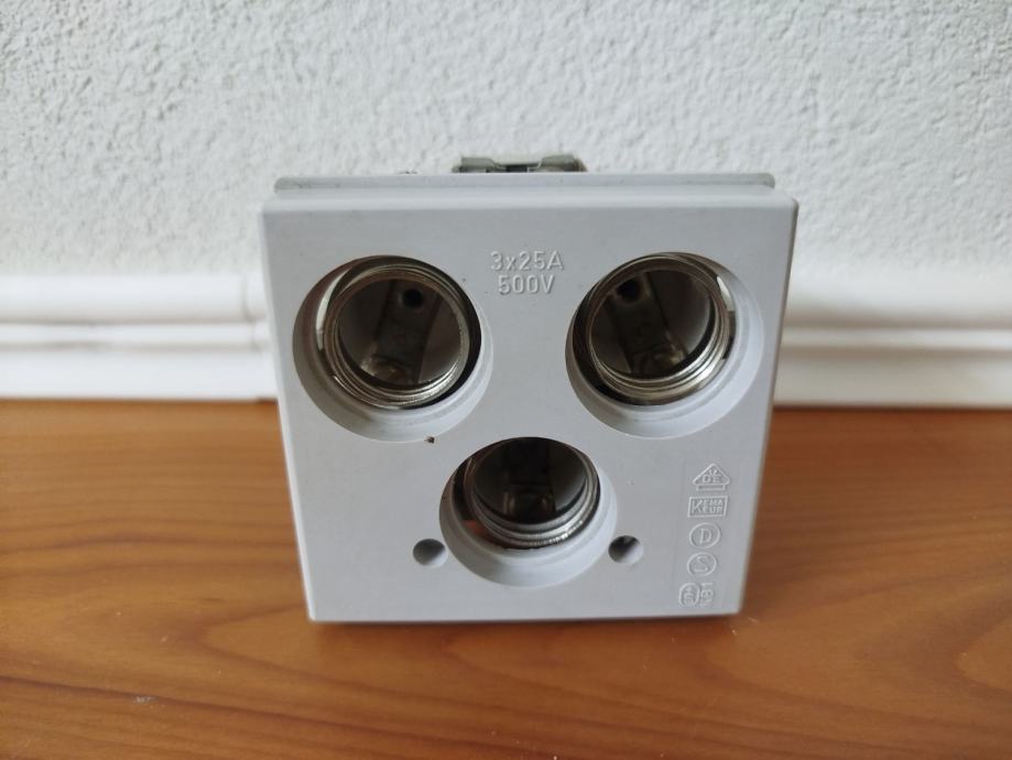 - podnožje, kvadratno za 3 talilne vložke 25A 500V (10€)