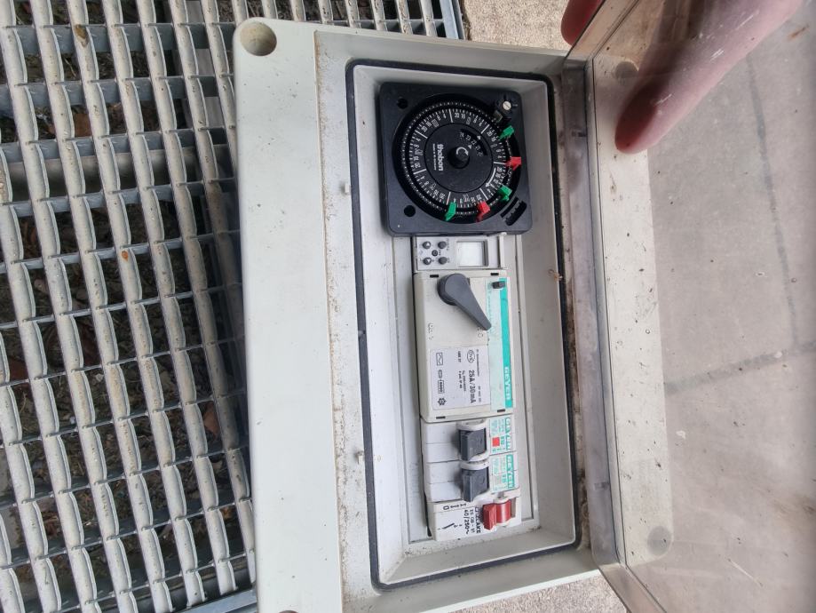 Varovalke s časovni m stikalom v omarici. Starejša zadeva vendar še uporabno.