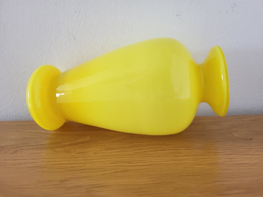 Prodam ročno izdelano vazo iz rumenega stekla.