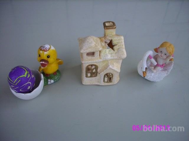 HIŠICA ZA SVEČKO IN RAČKA Z POSODICO ZA JAJČKO,DOJENČEK NA LABODU.