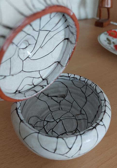 Unikatna okrasna keramična posodica, primerna tudi kot sladkornica.