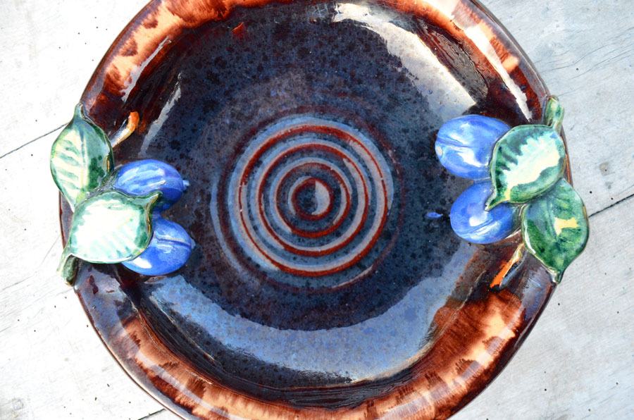 Keramična skleda/krožnik s slivami, starinska (stara skoraj 100 let)