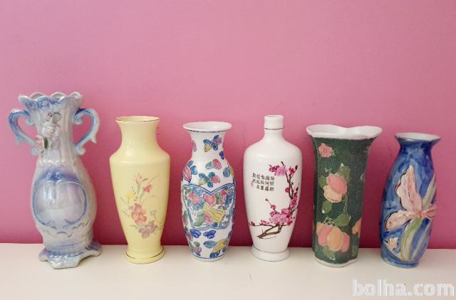 Prodam več lepo ohranjenih keramičnih vaz različnih dimenzij (sledijo si od leve proti desni) : 25cm (PRODANA), 21.5cm(PRODANA), 20.5cm, 20cm, 21.5cm (PRODANA) in 19cm.