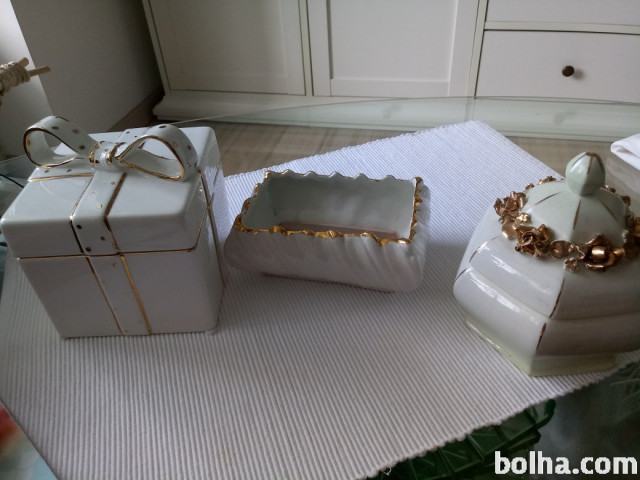 Različne, nepoškodovane. Ob nakupu vseh treh je cena 20 eur in bela z zlatim vzorcem-ročno delo 18 eur.