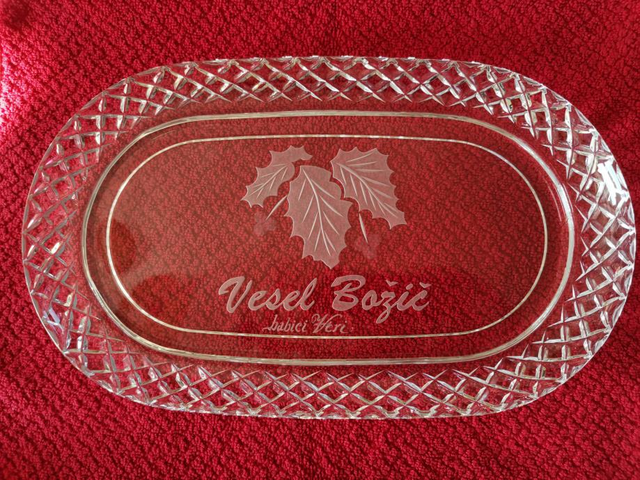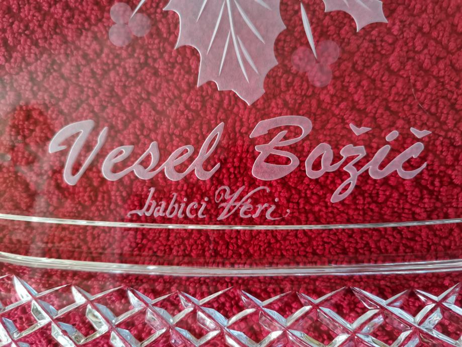 KRISTALNI OVALNI PLADENJ S POSVETILOM ZA BOŽIČ "VESEL BOŽIČ babici Veri"