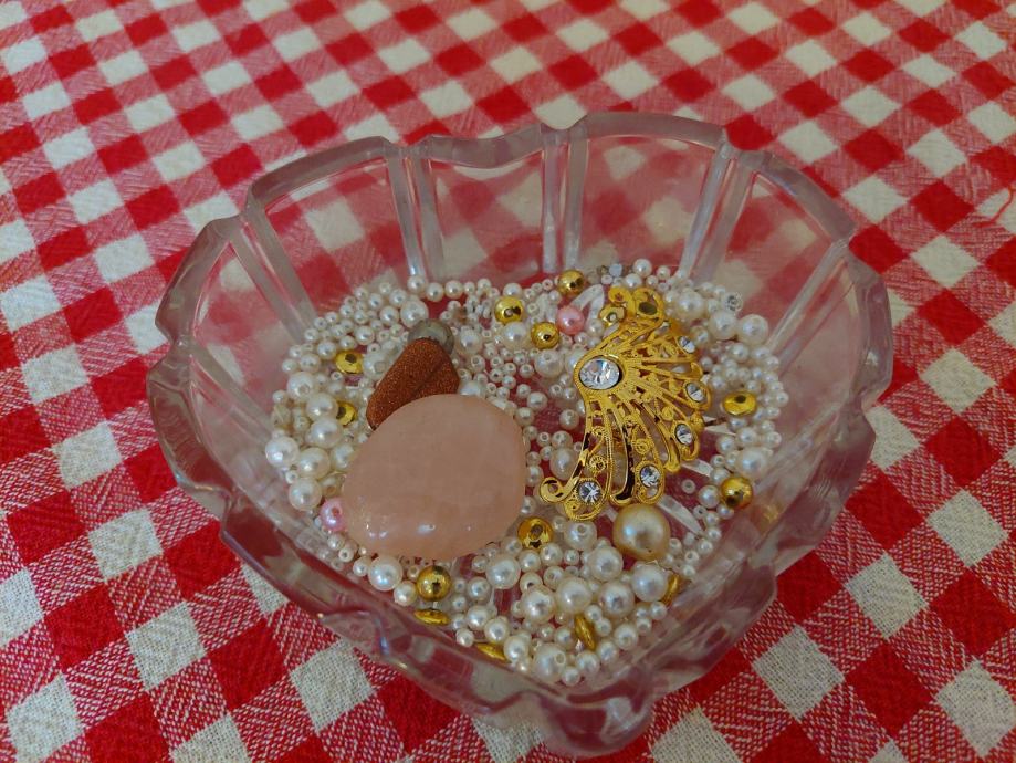 Prodam kristalni srček s slik, uporabljan je bil za hranjenje nakita.