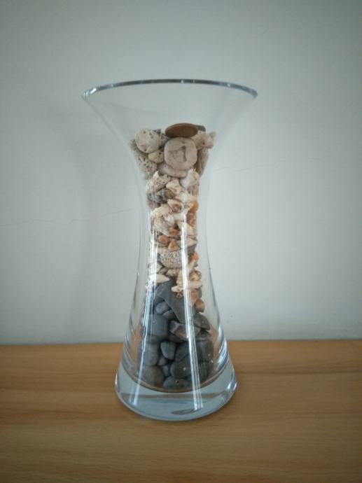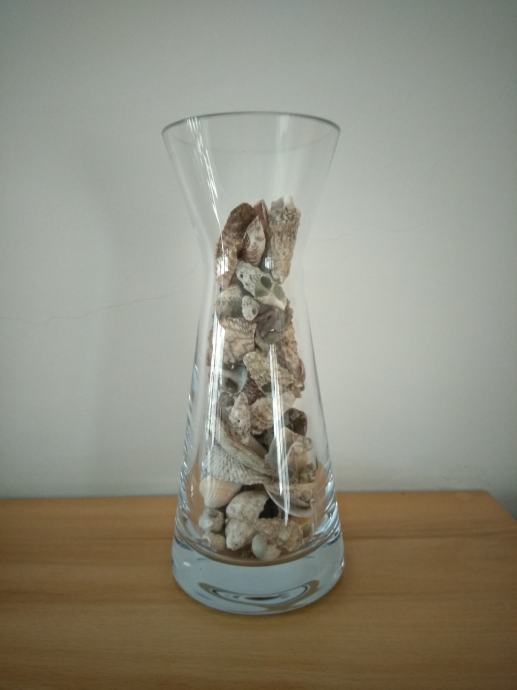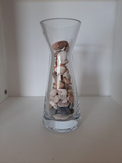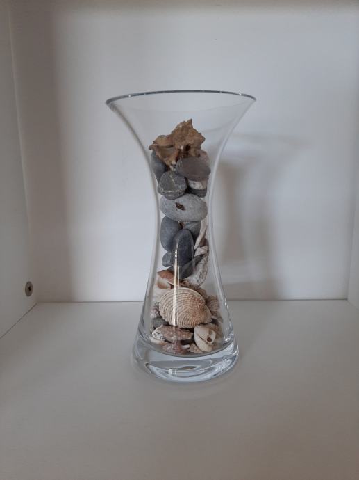 Omejena serija ročno narejenih kristalnih vaz višine 20 cm, skupaj s pravimi kamenčki ter školjkami, polepša vaš dom.