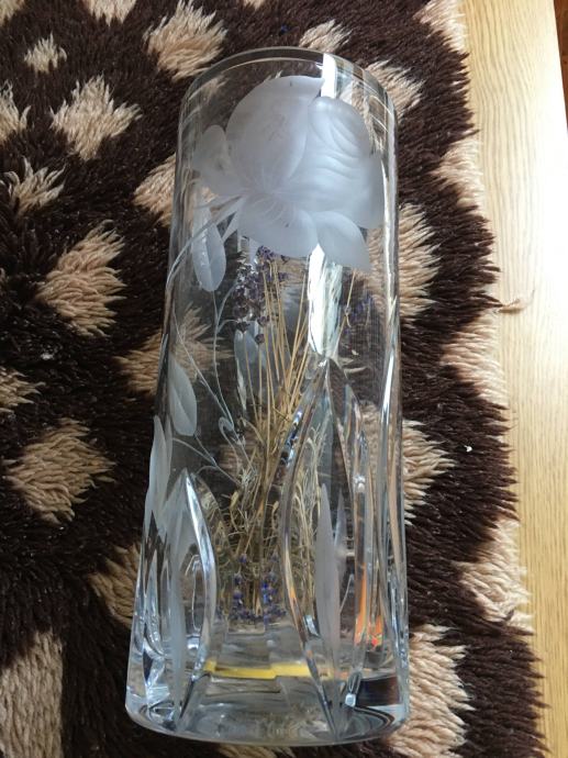 Prodam kristalno vazo s cvetličnim motivom velikosti 33 cm.