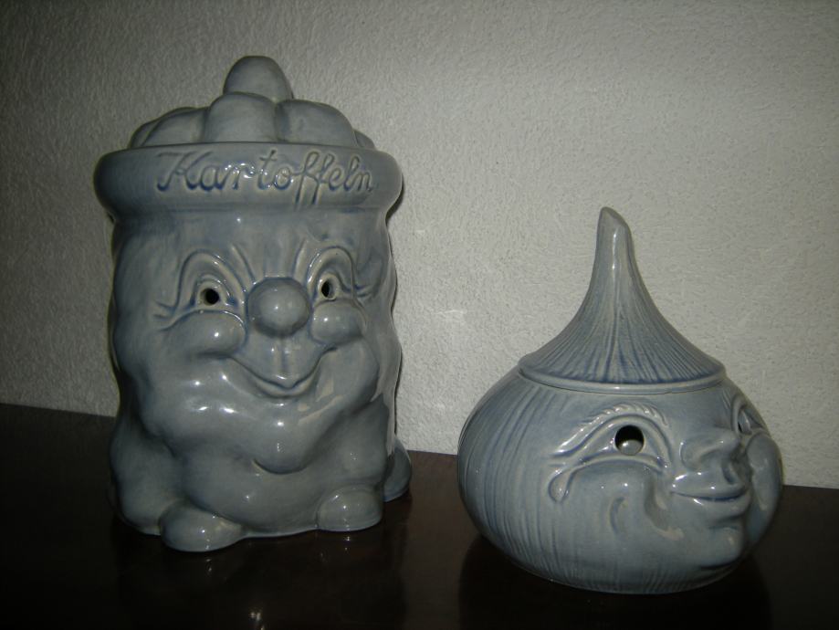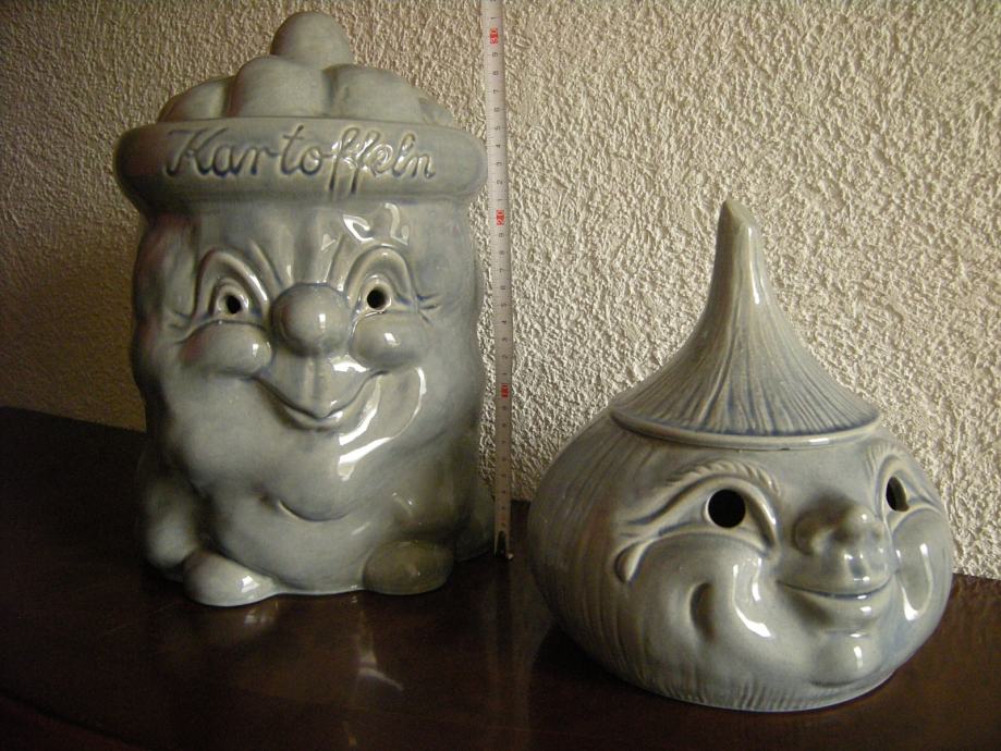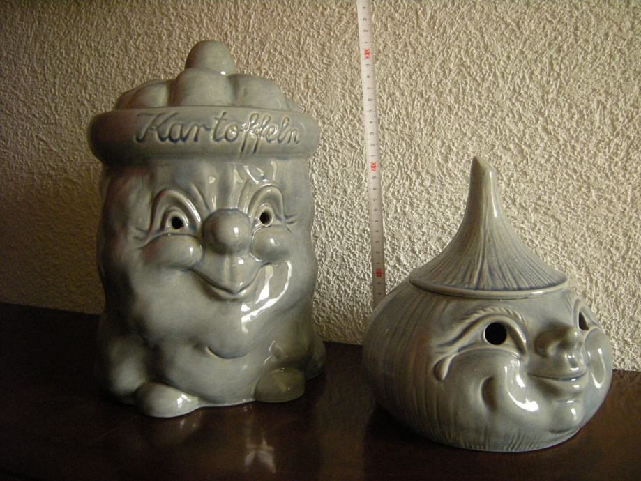 2 okrasni keramični posodi za shranjevanje (krompir, čebula, česen...), nerabljeni, nepoškodovani, naprodaj