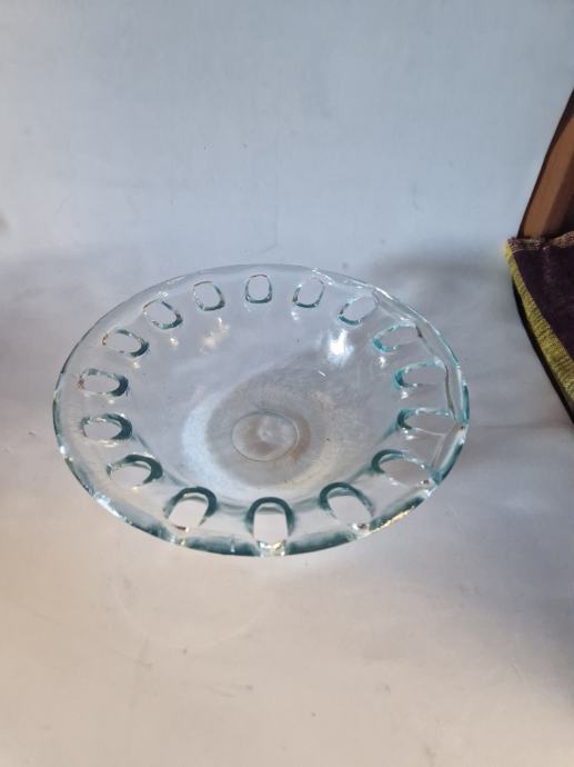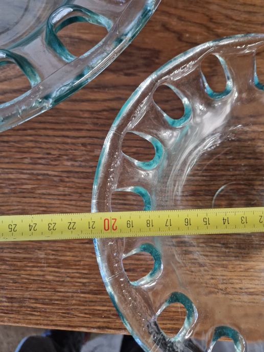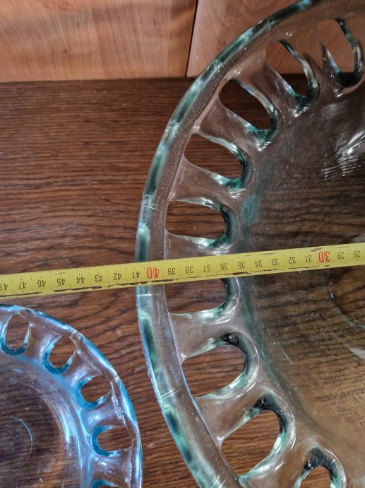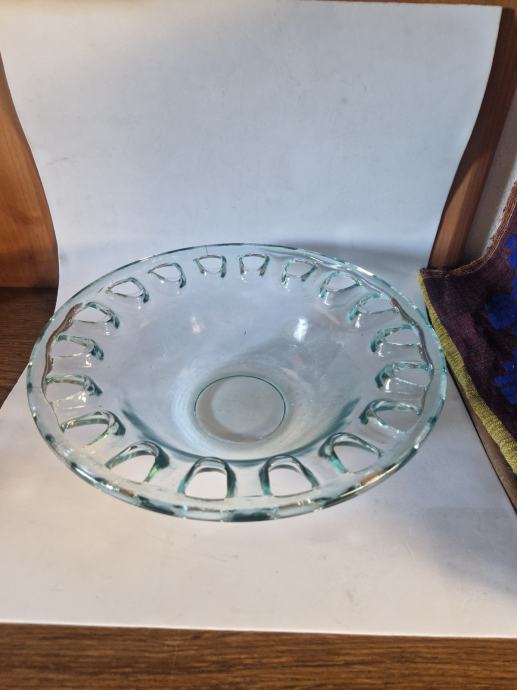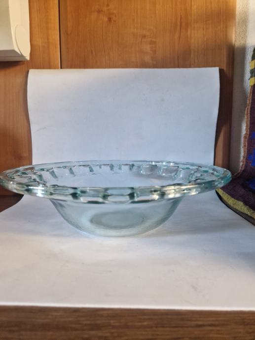 Prodajam set treh rabljenih steklenih skled z dekorativnim vzorcem, ki bodo elegantna popestritev vašega doma. Sklede imajo zanimiv reliefni vzorec in so še vedno v dobrem stanju. Odlične so za serviranje ali kot okrasni element v dnevni sobi ali jedilnici.